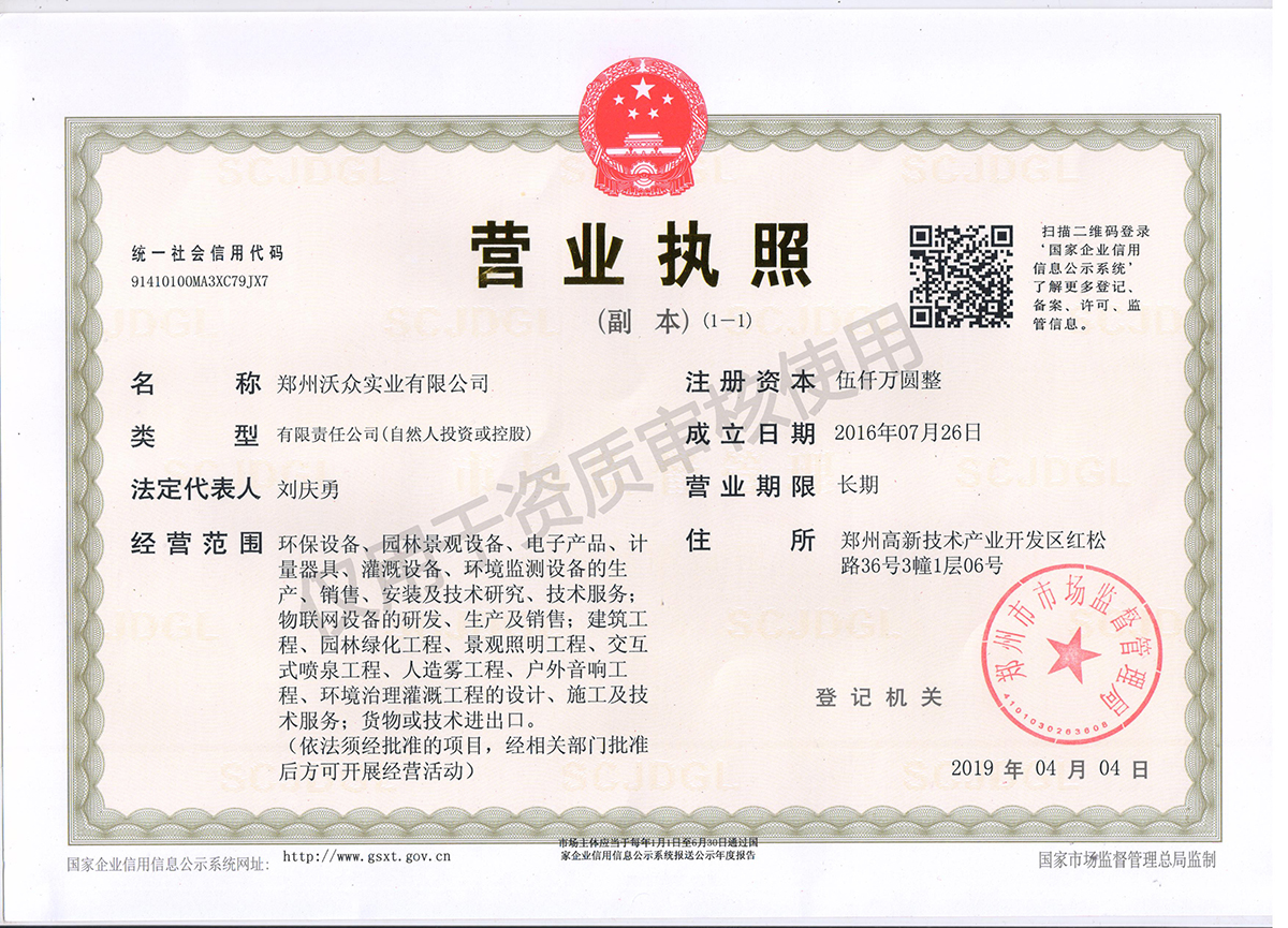 鄭州沃眾實業有限公司,簡稱 鄭州沃眾 ,是一家集科技水景設備、環保設備、環境監測設備、物聯網設備研發、生產、銷售及建筑工程、園林綠化工程、景觀照明工程、交互式噴泉工程、人造霧工程、戶外音響工程、環境治理工程設計和施工為一體的高新技術企業。 公司自成立多年以來,堅定不移地實施科技創新驅動發展戰略,致力于相關產品的研發和應用,在高新技術設備制