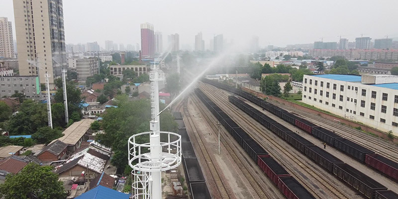 位于平煤集團(tuán)申西車(chē)站的高空降塵除霾項(xiàng)目完工,采用40米高桿在火車(chē)道軌旁,降塵效果好。