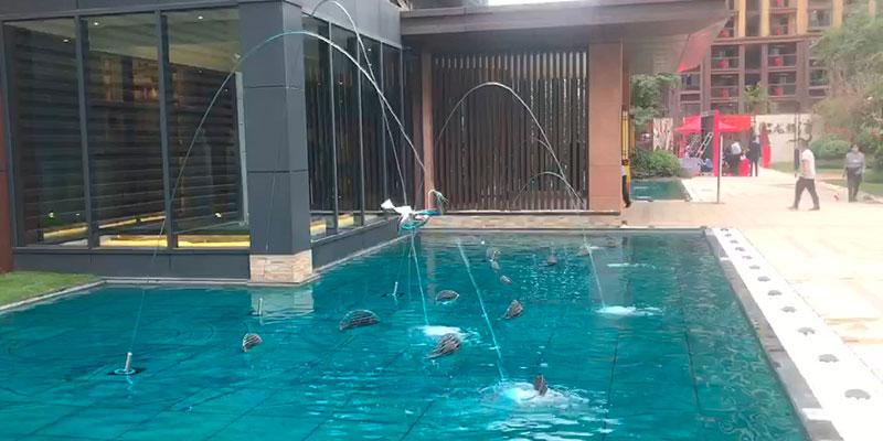 該項(xiàng)目位于滎陽(yáng)興華路龍熙灣售樓部,在大門(mén)兩側(cè)安裝了波光跳泉。