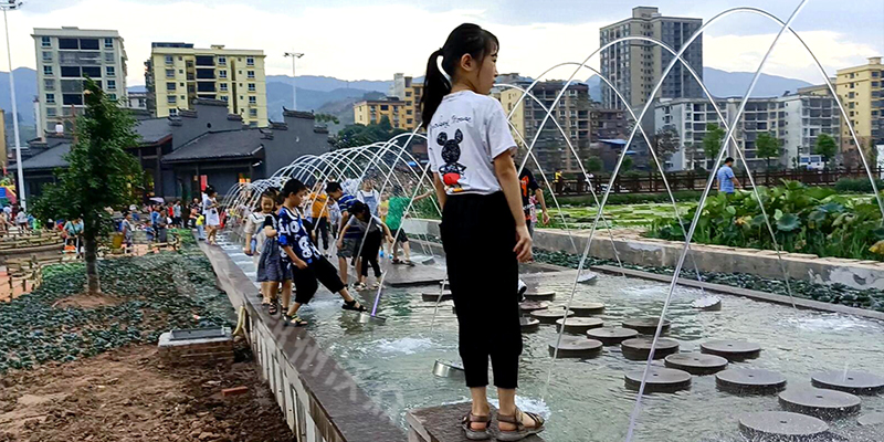 項目位于重慶的一個休閑度假農(nóng)莊,在水系景觀兩側(cè)安裝了互動的跳泉,趣味性強,飲料效果好,深受小朋友的喜愛。