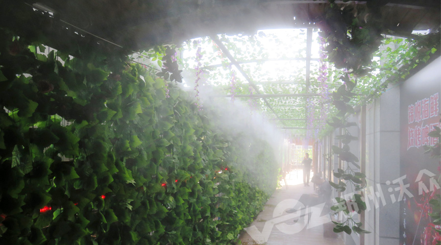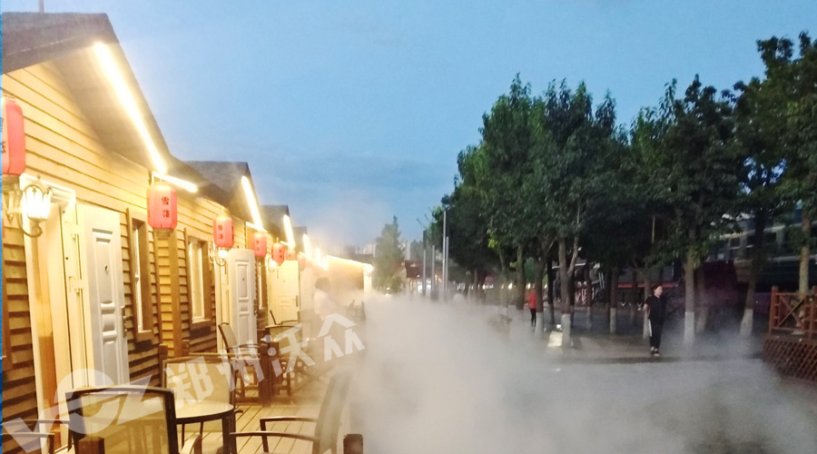 沃眾降溫噴霧系統,細膩、微濕的霧氣不會打濕皮膚和衣衫,微米級的水霧顆粒在空氣中蒸發,會帶走熱量,為商業街道內帶來絲絲清涼,為人們帶來舒適的街區環境!
