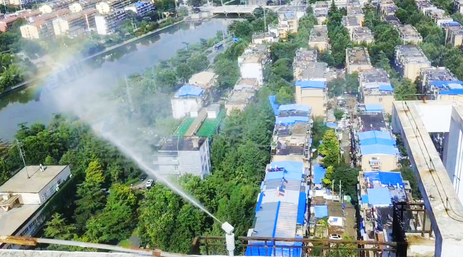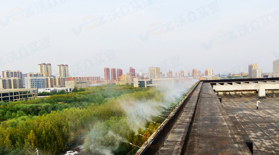 在樓頂或其他高處加裝的人工雨設備,可噴出微細的霧氣,宛如雨水一般清洗區域內的空氣。在高溫天氣中,霧氣蒸發,可帶走大量的熱量,降低區域內溫度,改善空氣質量,為人們帶夏日的絲絲清涼。